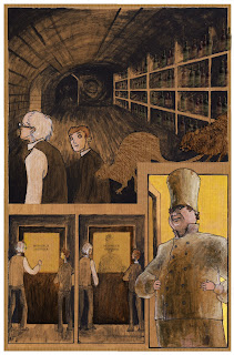 I am way pleased with the result. The concept was inspired by this awesome poster of Abram Games', king of London Transport poster design. I'm particularly pleased with - well, everything, actually, I'm smug on this one - but especially the way the 'face' of the city looks a bit like an angler fish or something equally ugly and predatory. I like the colour scheme too. I know Philip Reeve's feelings about steampunk (he doesn't love it) and I pretty much share them. Without the cold blue of the title I think the picture might look too steampunkish, so I feel good about the colour choices.